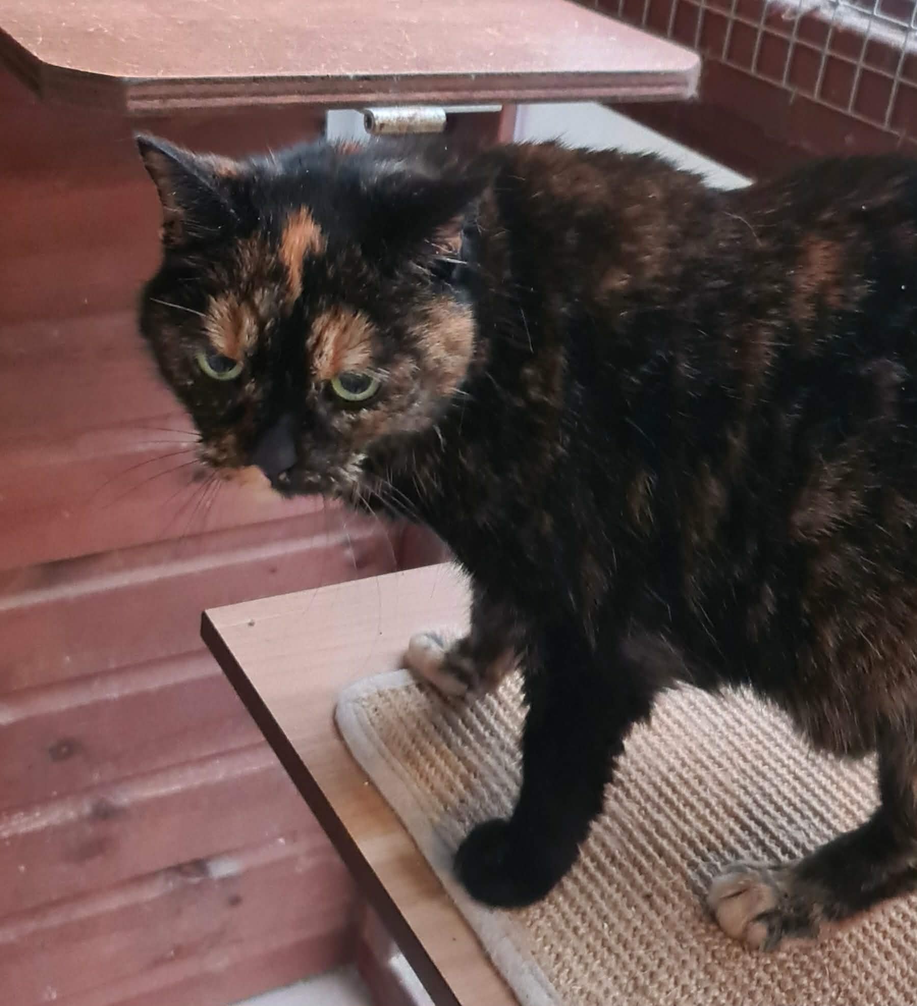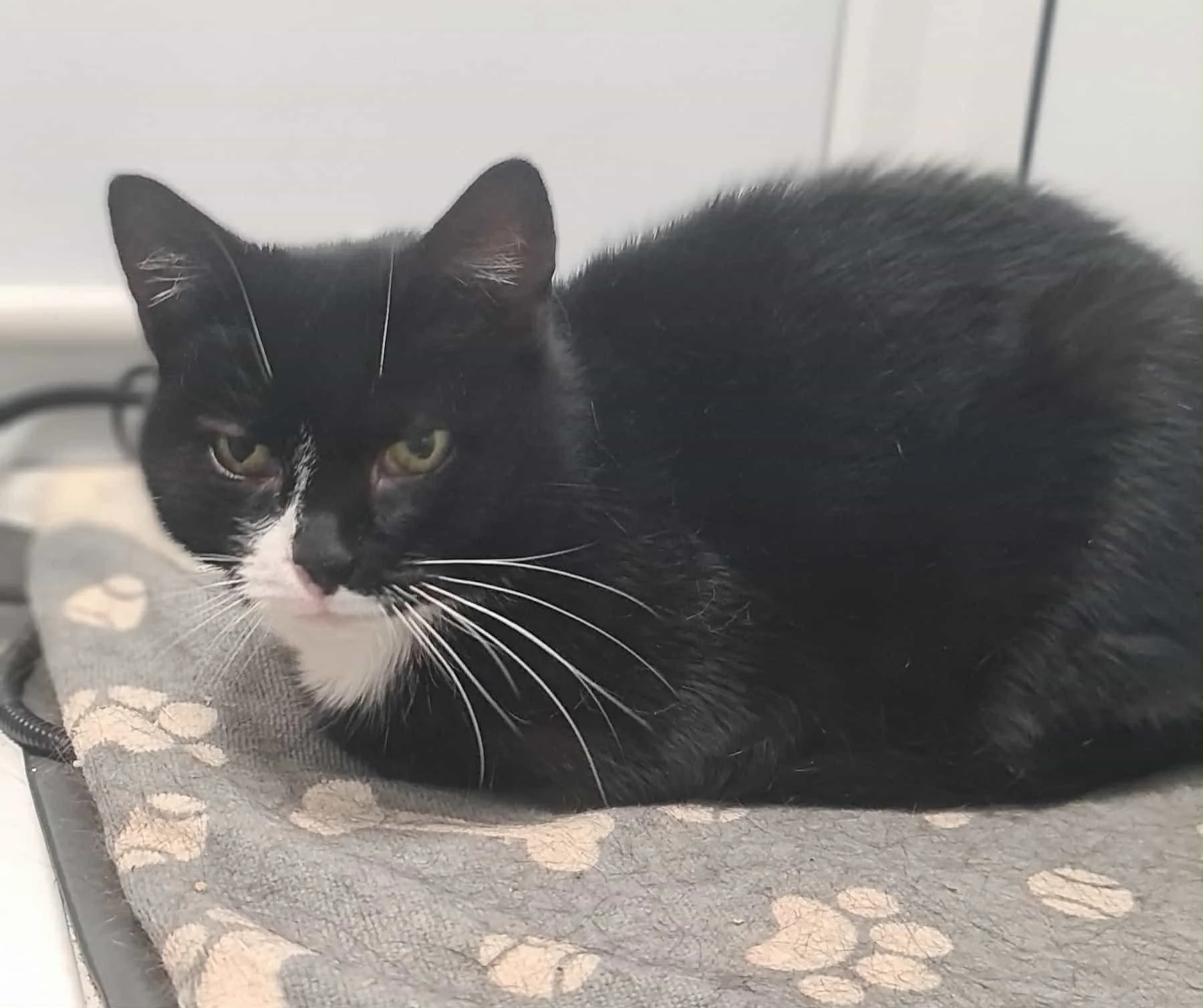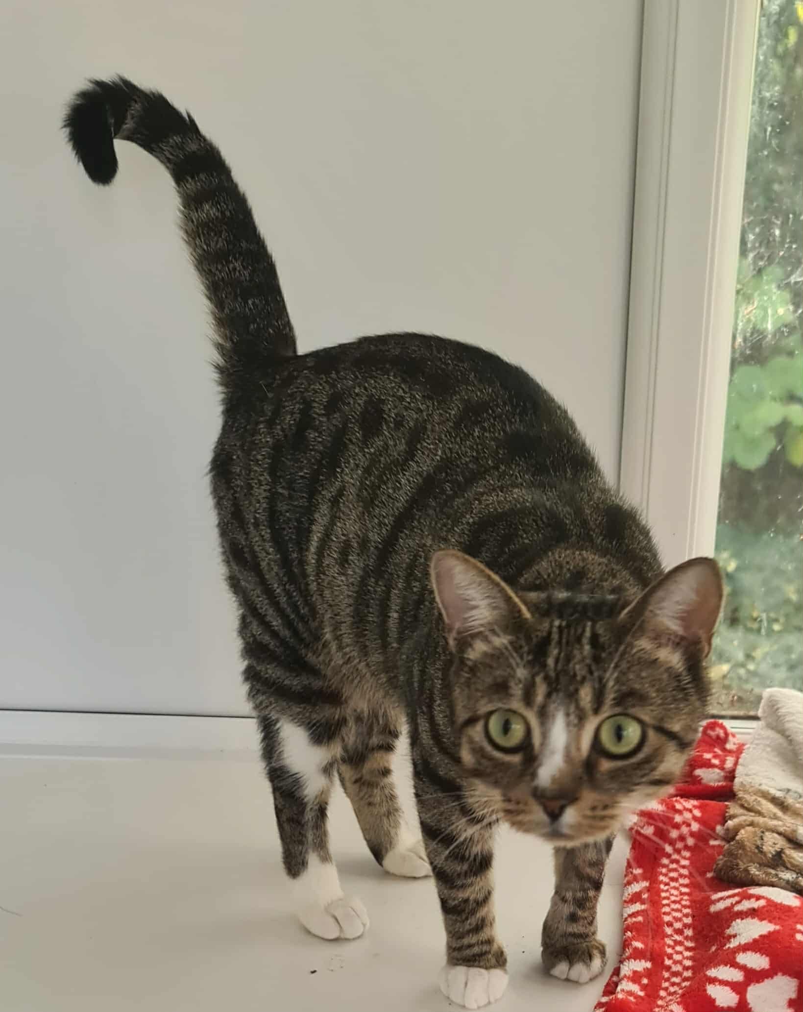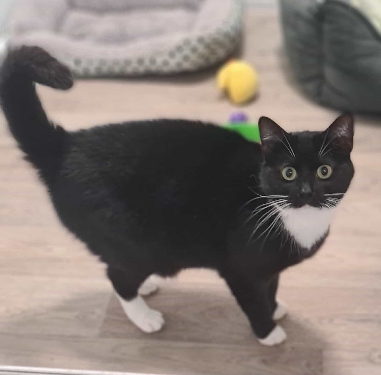 Jim Jam is full of vim and vigour. She loves her food and demands to be fussed.Jim Jam does need thyronorm twice a day, this is a liquid dropped onto food. She doesn’t notice. She’s a lovely cat who is confident and will soon settle into a home.