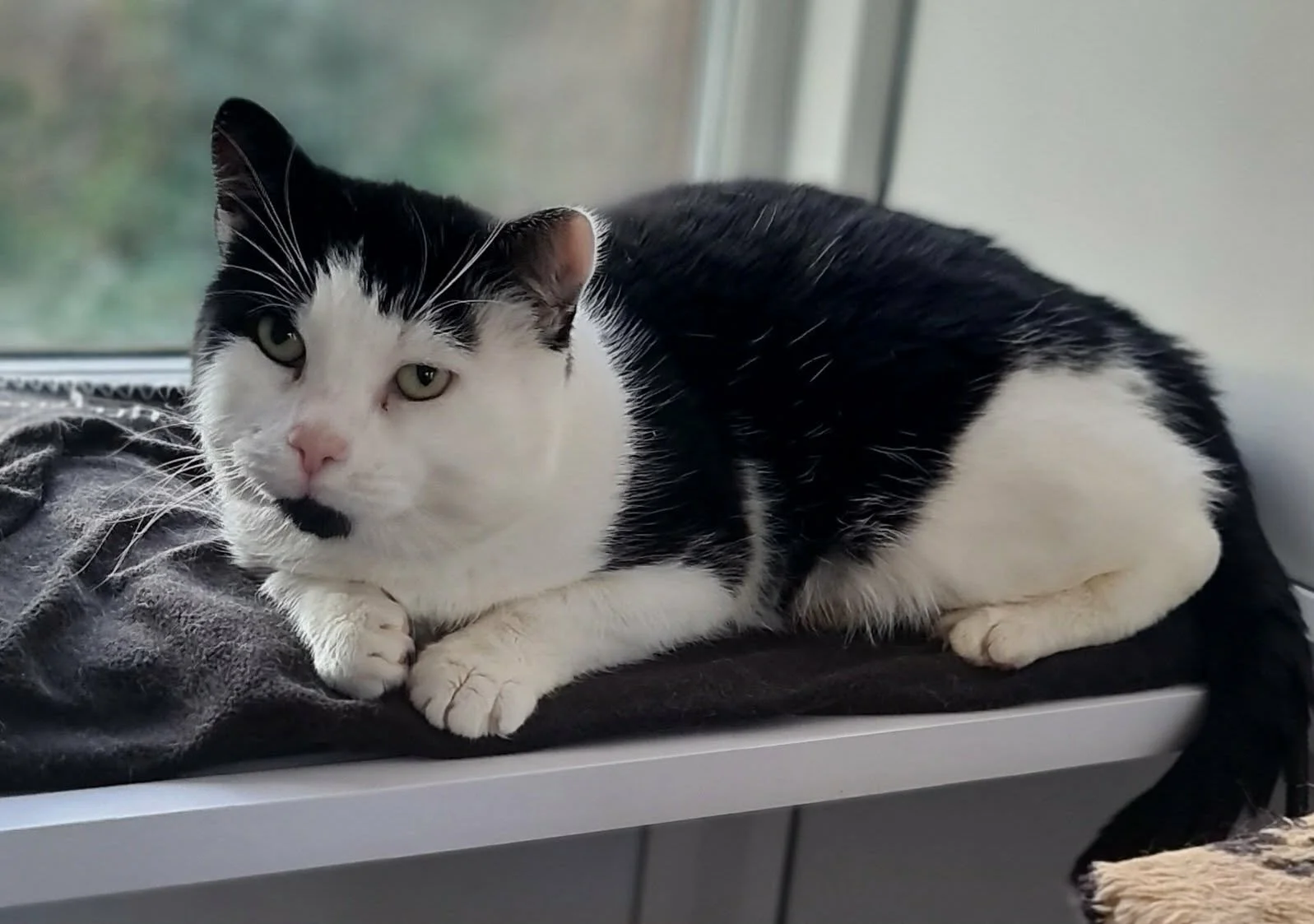 Twilight is a friendly cat. He has only just arrived at the rescue, but he already loves a tickle under the chin.