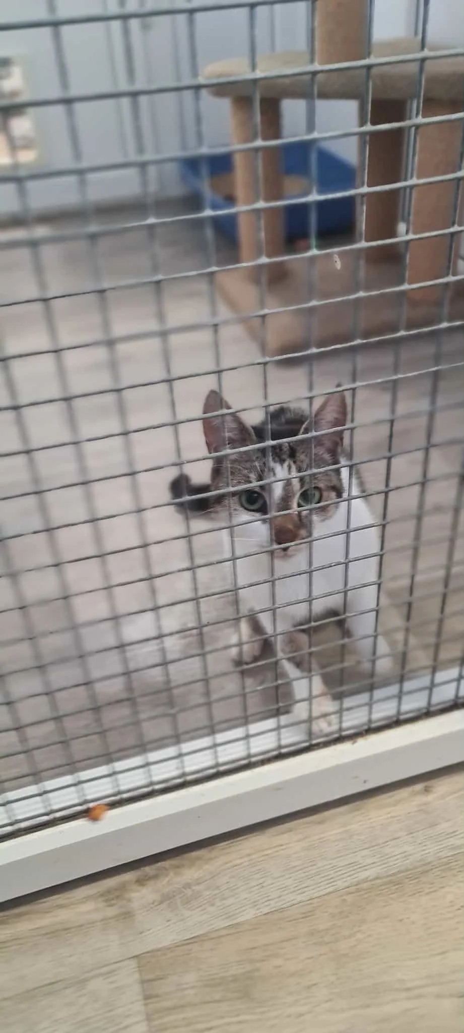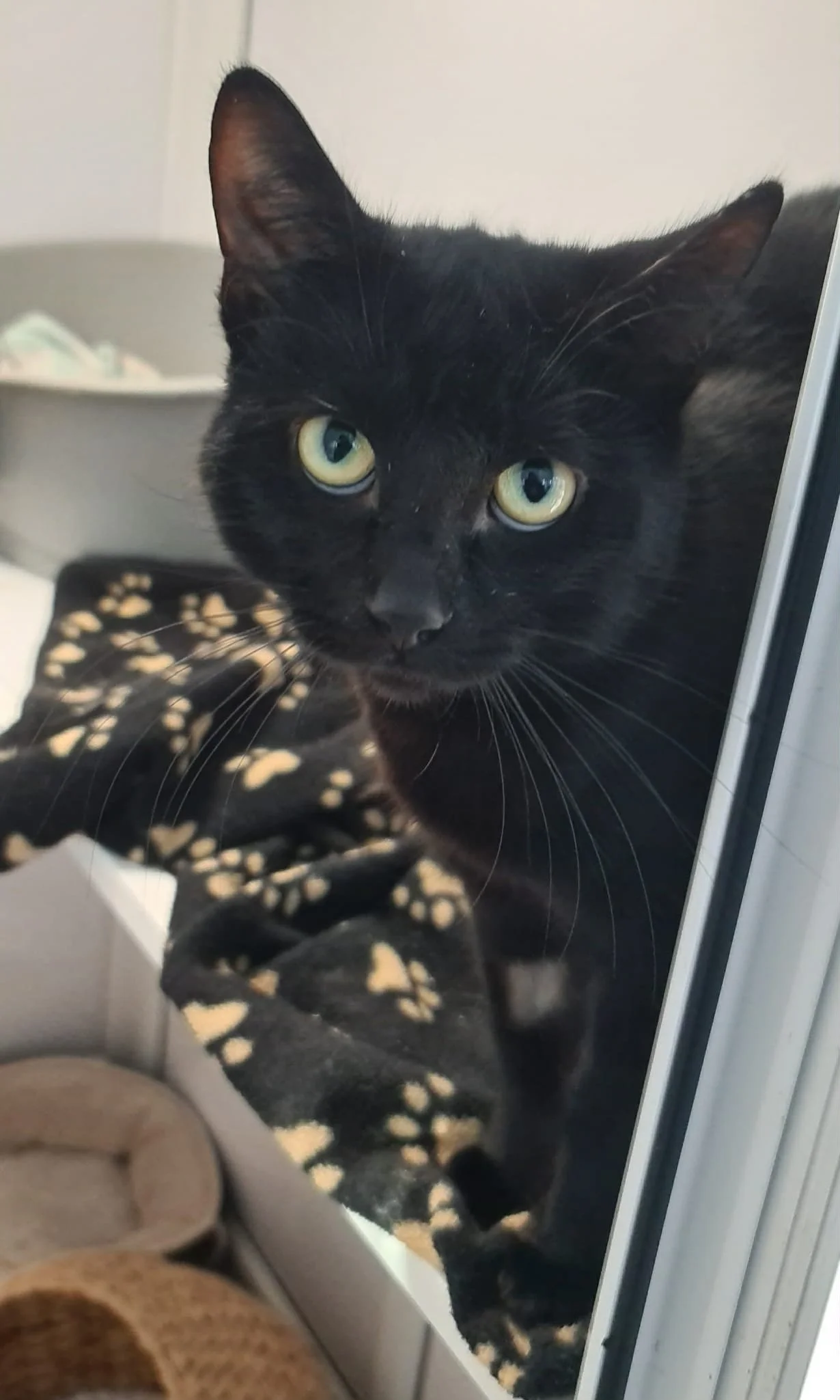 Minette came from Handsworth and arrived at the rescue very pregnant. She had a lovely litter of kittens and is now ready to find a home of her own. Minette is very lively and kept rushing about, hence the picture through the door! She is really friendly and will be a wonderful pet.