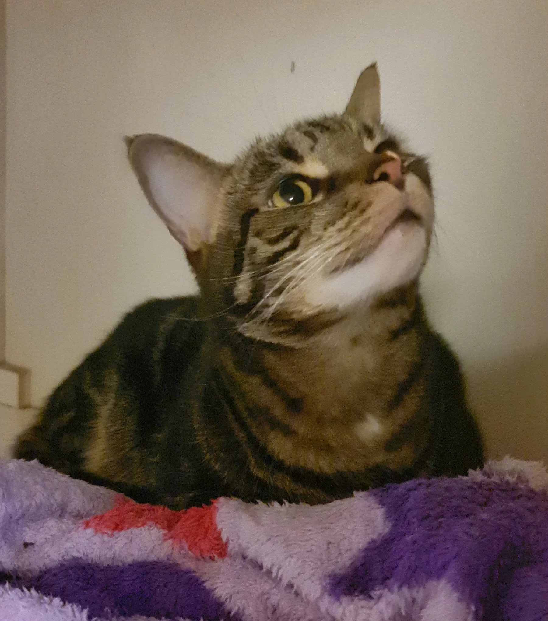 Oracle loves to rub around your legs. She is very fussy with her food, she likes Gourmet and will always eat dry food. Oracle would prefer a home without children as she can be a bit grumpy at times!