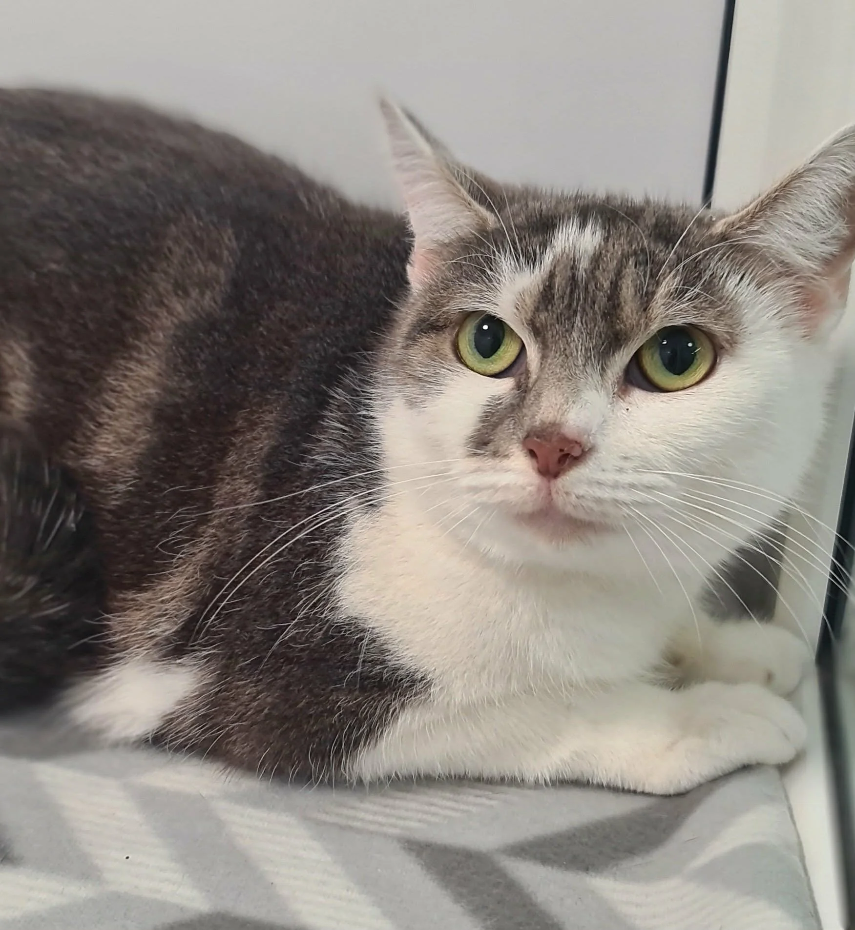 Beebeeb is a friendly cat who really loves his food. Beebeeb is FIV positive and so needs to live as an indoor cat. He’s a bit shy at the moment, but always welcomes a fuss.