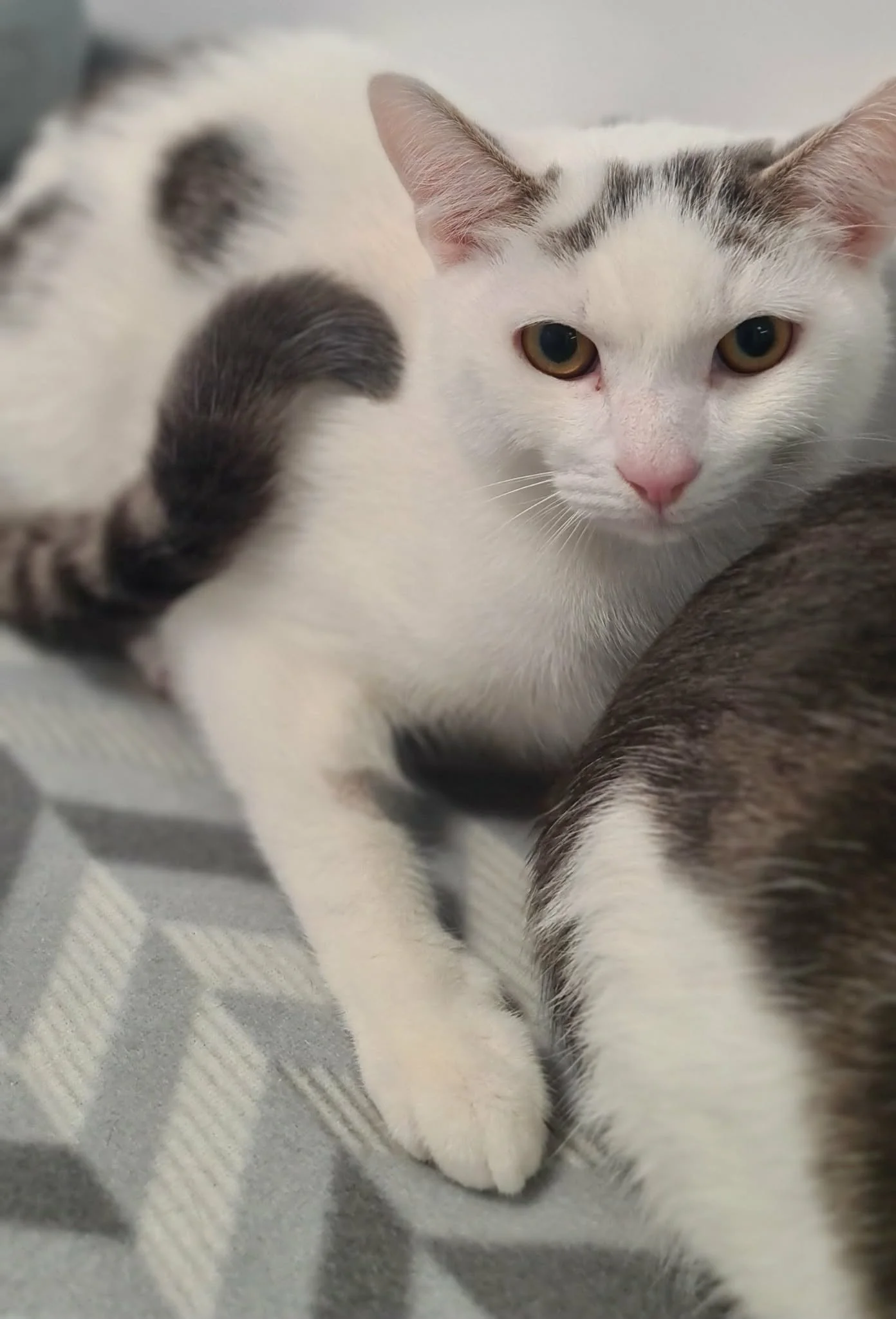 Macey and Mouse are mother and son. Both are really friendly and love a fuss. Mouse has the most pretty silver striped tail. They are a lovely pair of cuddly cats.