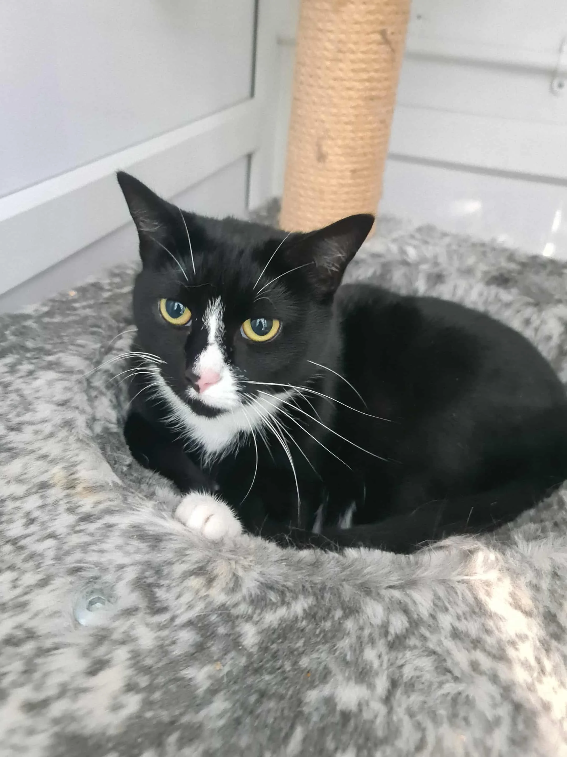 Cookie has a weight problem as you can see from the photo. She’s a strong character and needs to be the only cat in the household and where there are no young children. She does like to be stroked and would be a good companion.